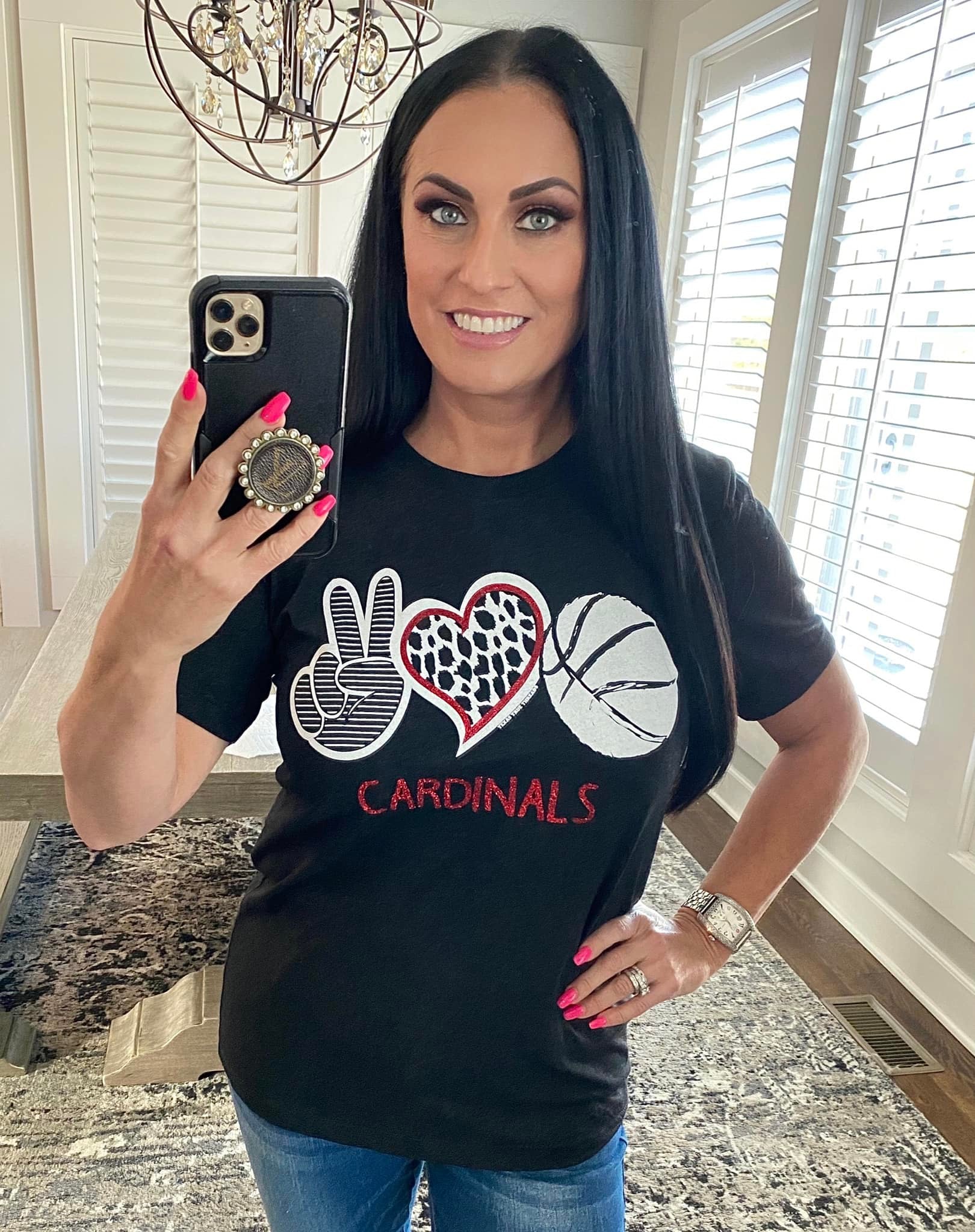 - Cardinals Peace Love Basketball Tee