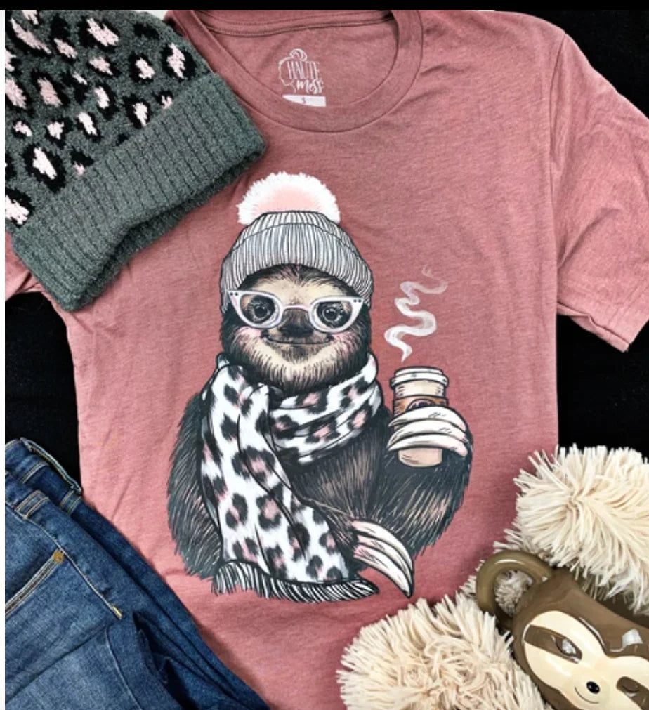 - Little Girls Mauve Snowy Sloth Tee