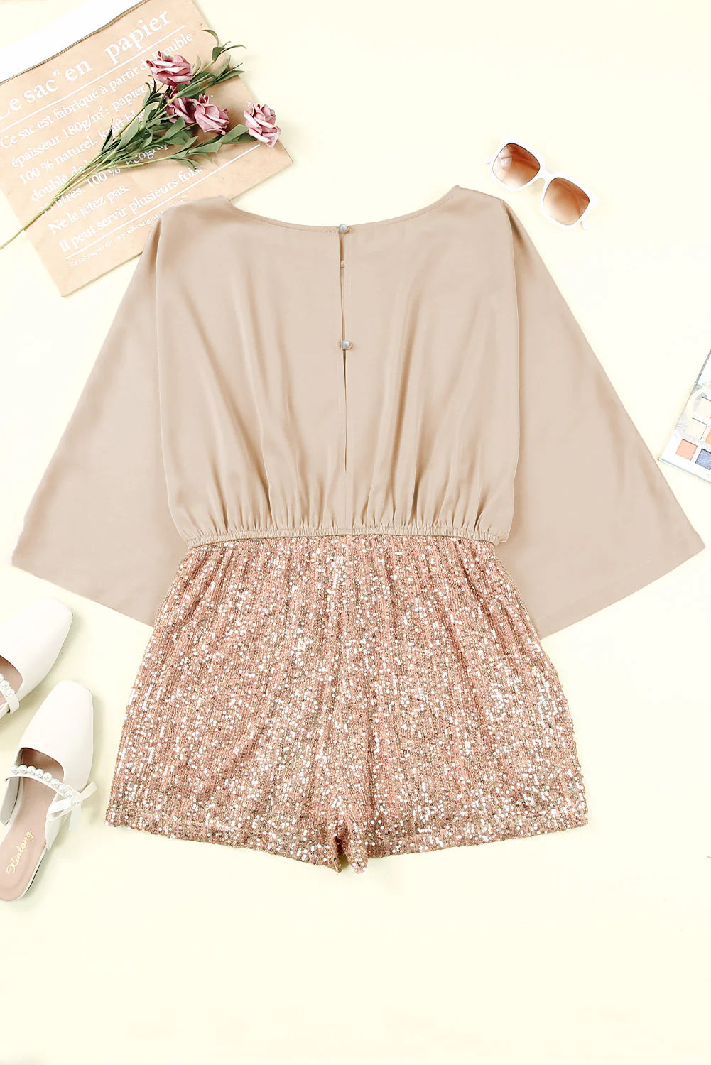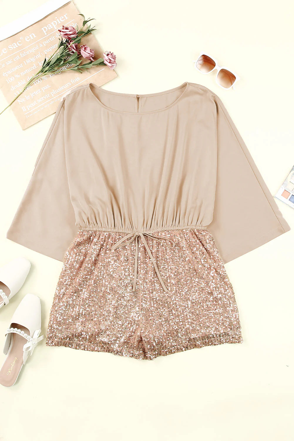 Rose Gold Sequin Drawstring High Waist Romper - Size M