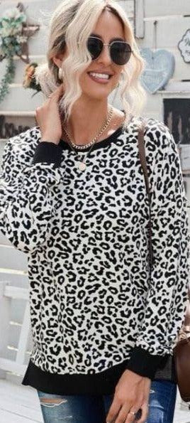 White Leopard Side Slit Sweatshirt