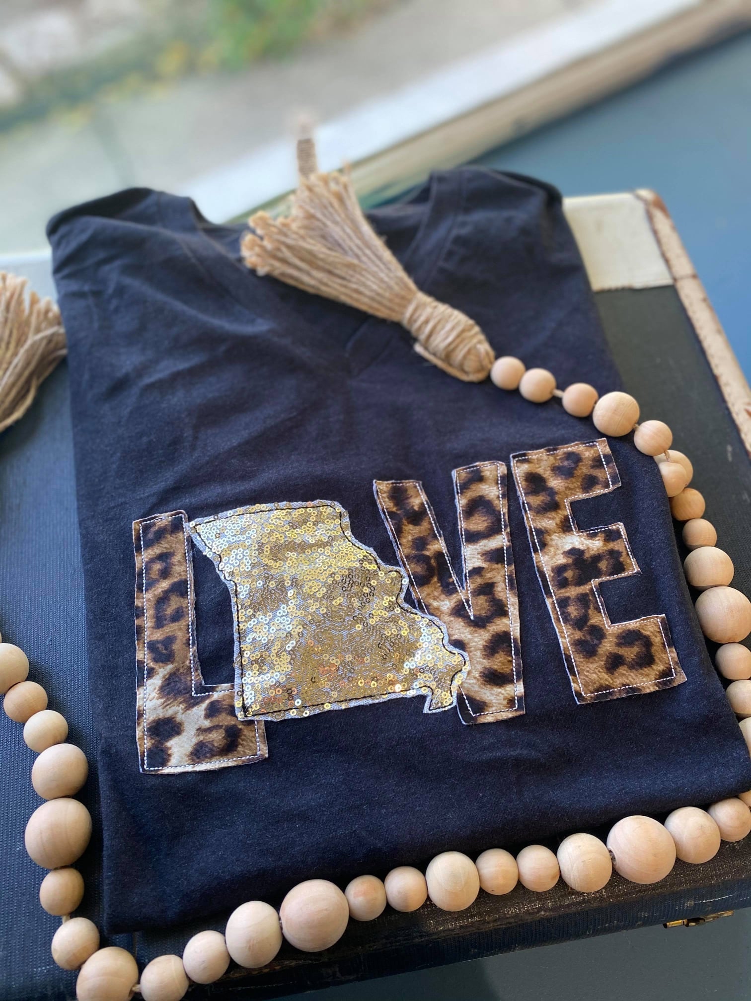 Missouri State Leopard LOVE Sequin Embroidered Tee
